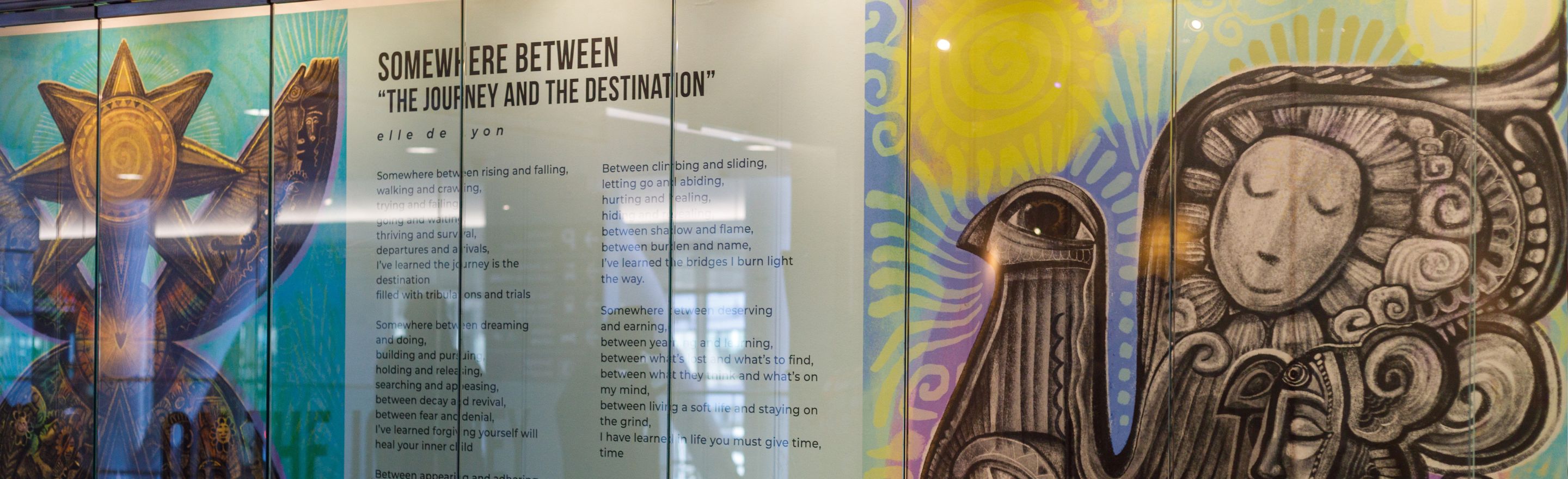 Now open at Toronto Pearson’s Malton Gallery in Terminal 1, On the Journey / En Chemin is a new exhibit showcasing voices from the R.I.S.E. (Reaching Intelligent Souls Everywhere) Edutainment group. This inspiring collection features visual art, poetry, and spoken word that explores themes of self-expression, identity, and imagination.